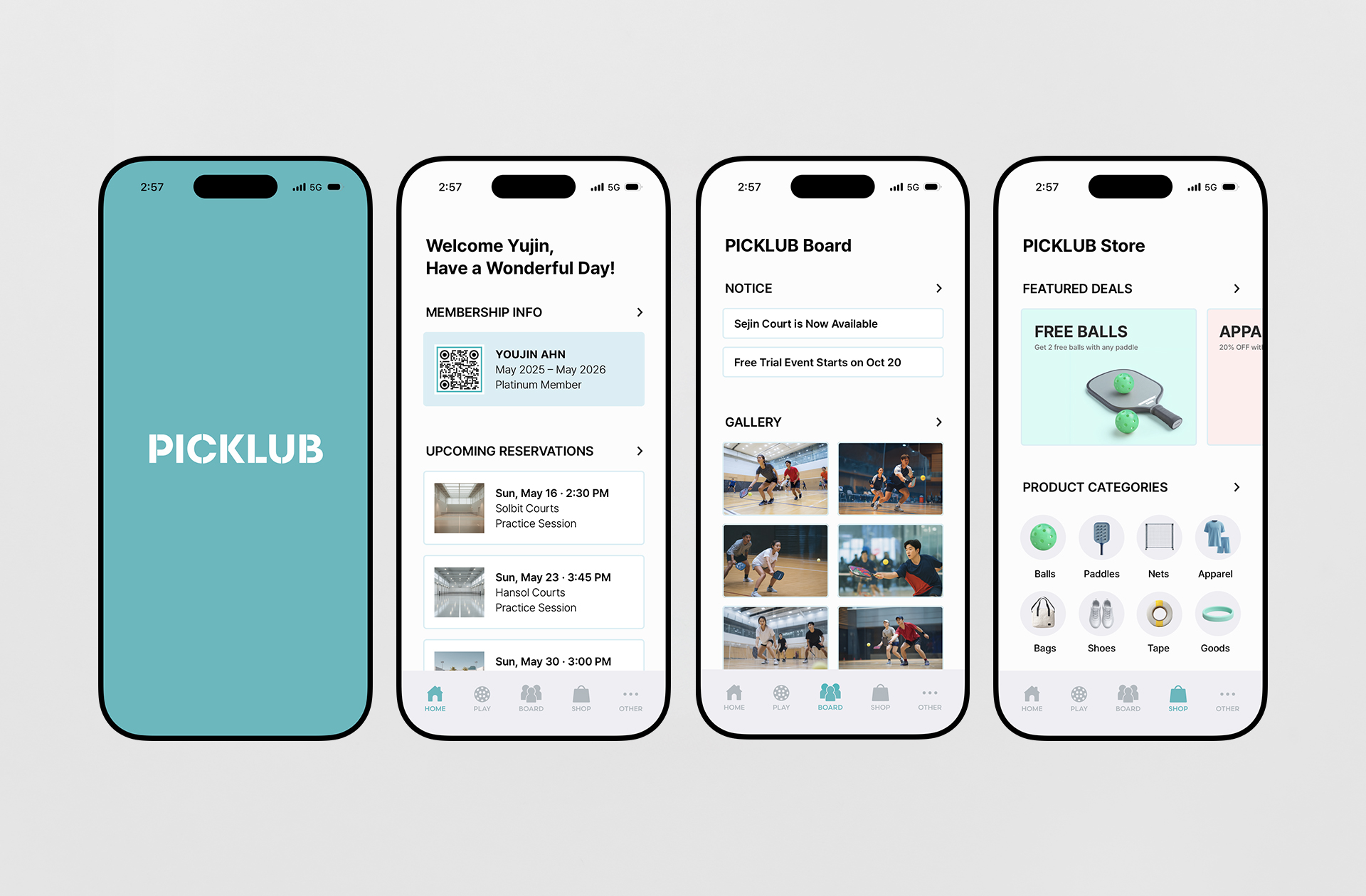 피클볼 스포츠를 더 많은 사람들이 함께 즐길 수 있도록 도와주는 픽클럽을 위한 비주얼 브랜드 아이덴티티 디자인을 소개합니다. 피클볼 경기장의 모습에서 영감을 받은 픽클럽의 로고와 픽클럽의 다양한 피클볼 경기와 더 나은 피클볼 물품 구매 경험을 만드는 여러 브랜드 아이템을 만나보세요.